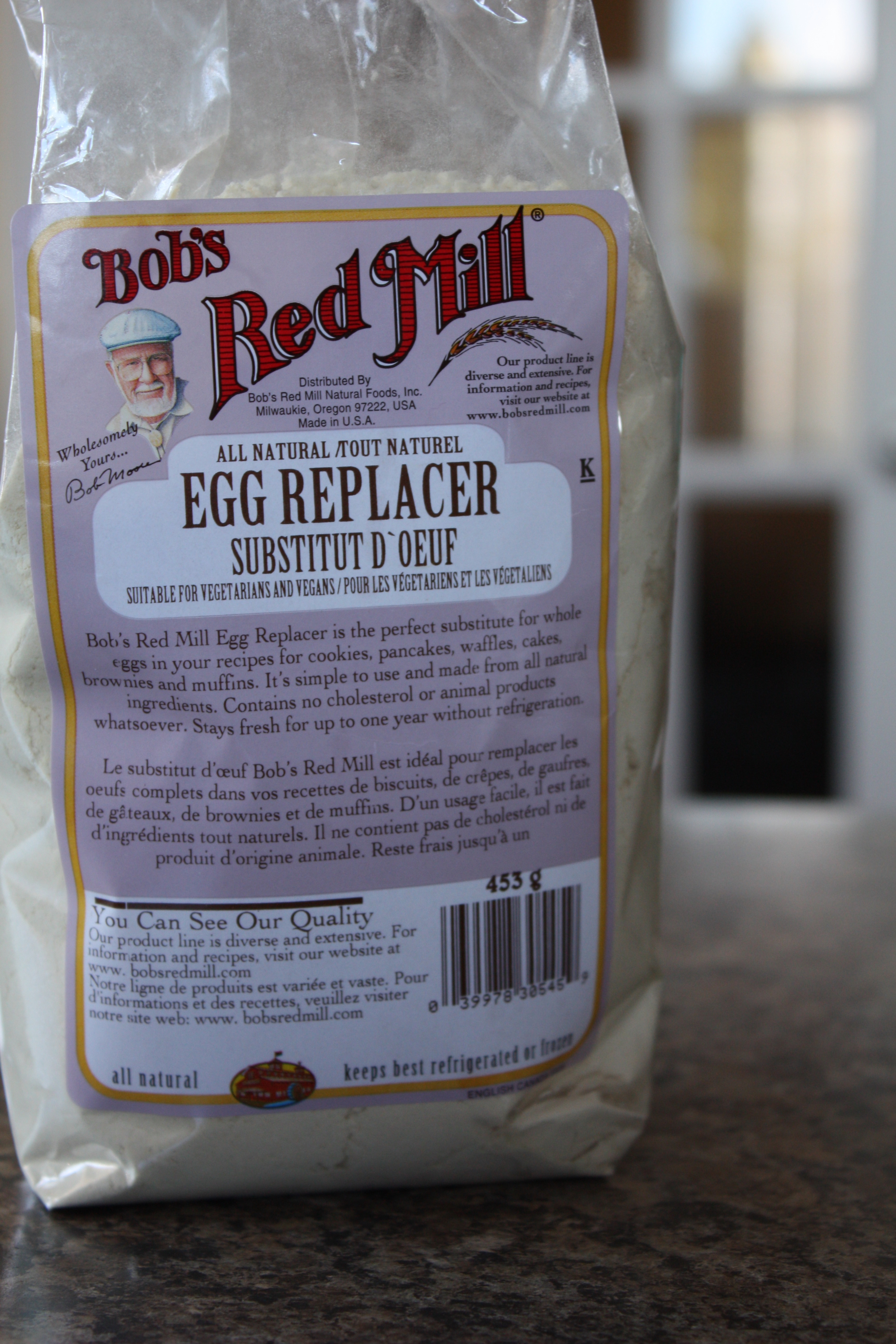 This is my favorite egg replacer, Bob’s Red Mill. It works really well when baking with baked goods that have flour in them.  I have used it successfully with pancakes, waffles, cakes, cupcakes, cookies, muffins, donuts….you get the idea! I buy it at my local health food store.