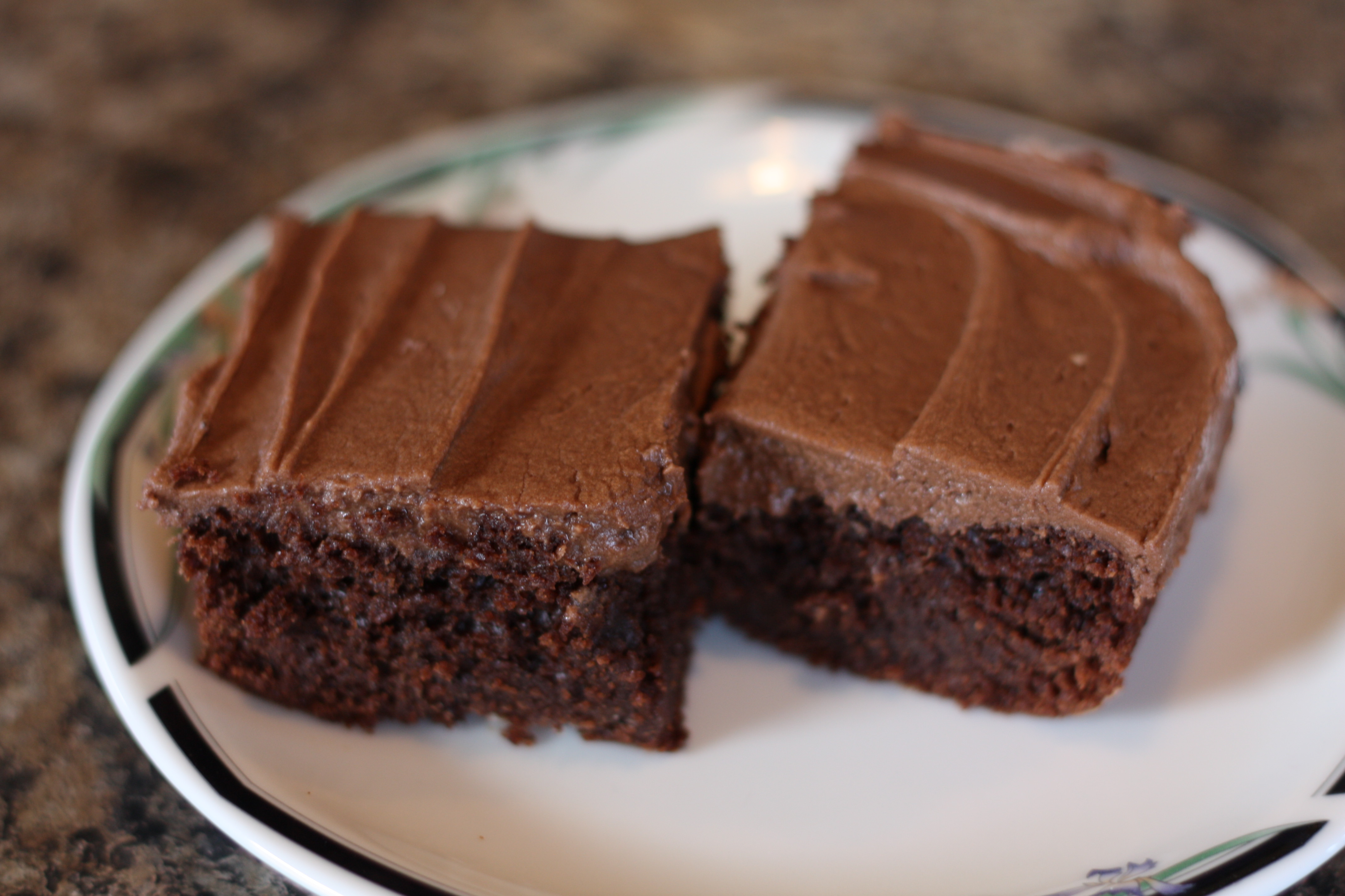 This brownie recipe is made using egg replacer unlike my other recipe (https://myegglessworld.wordpress.com/2013/07/31/eggless-brownies/) which uses yogurt instead. This recipe is very yummy and the frosting makes them even better! This is a cake-like brownie.