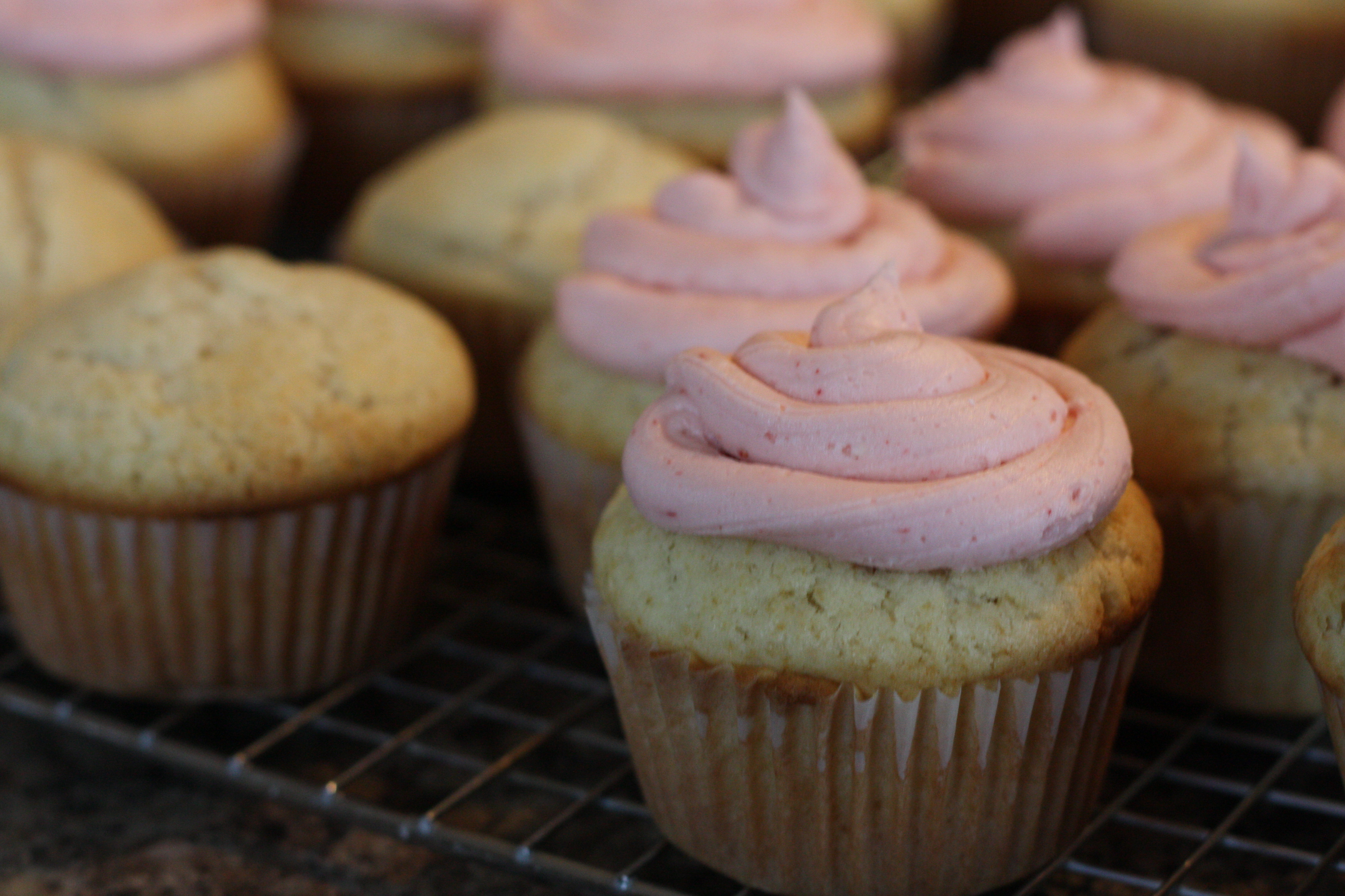 Scoop into muffin tins lined with paper cups. Bake 350 degrees F for 18 to 22 minutes. Makes 12 large cupcakes.