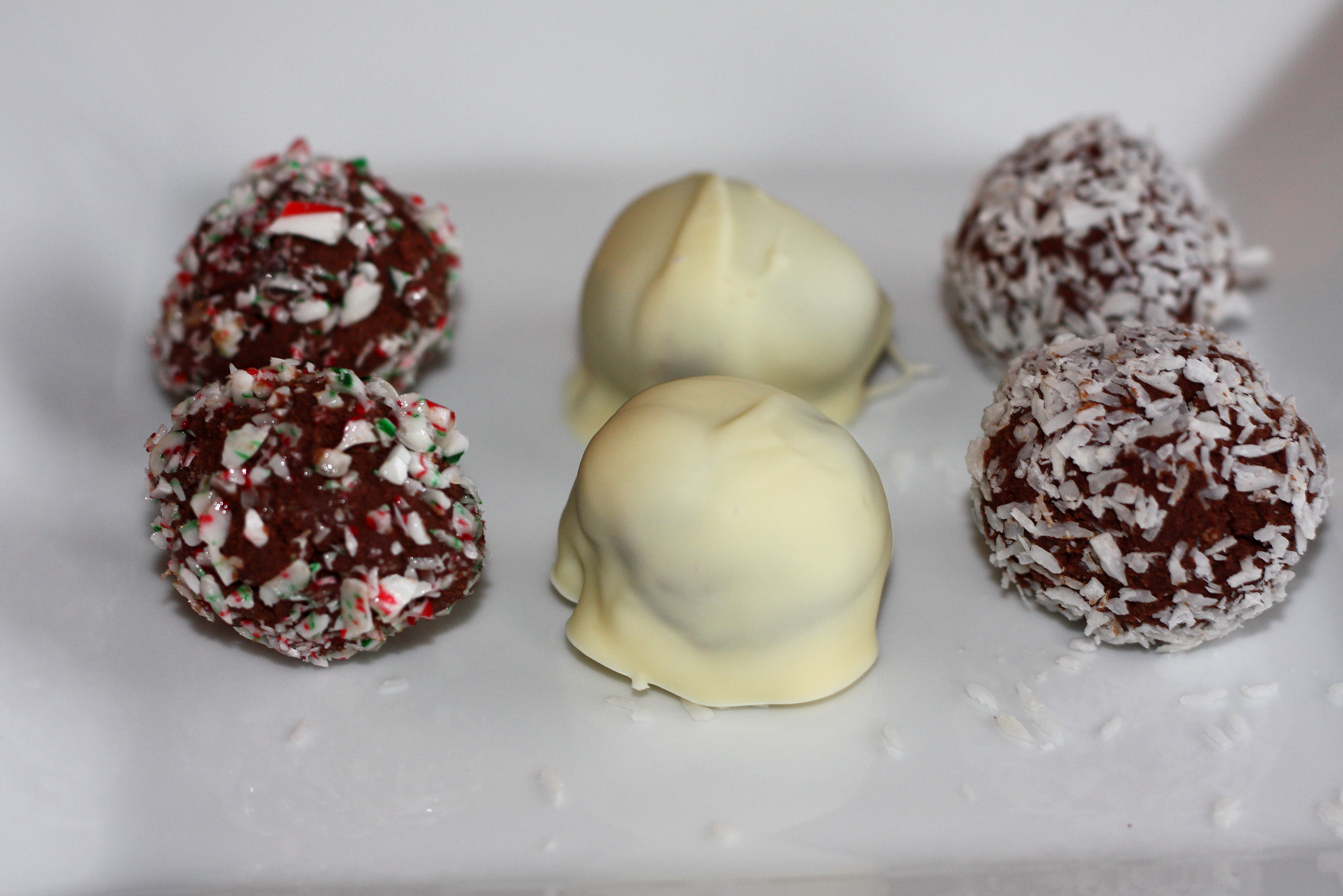 Cream the softened cream cheese, then add in the melted chocolate and beat well. Put in the refrigerator or freezer until hard enough to roll into balls. Once hard, roll into bite-sized balls and then roll into toppings. If covering in melted chocolate, freeze first until hard before dipping in chocolate.