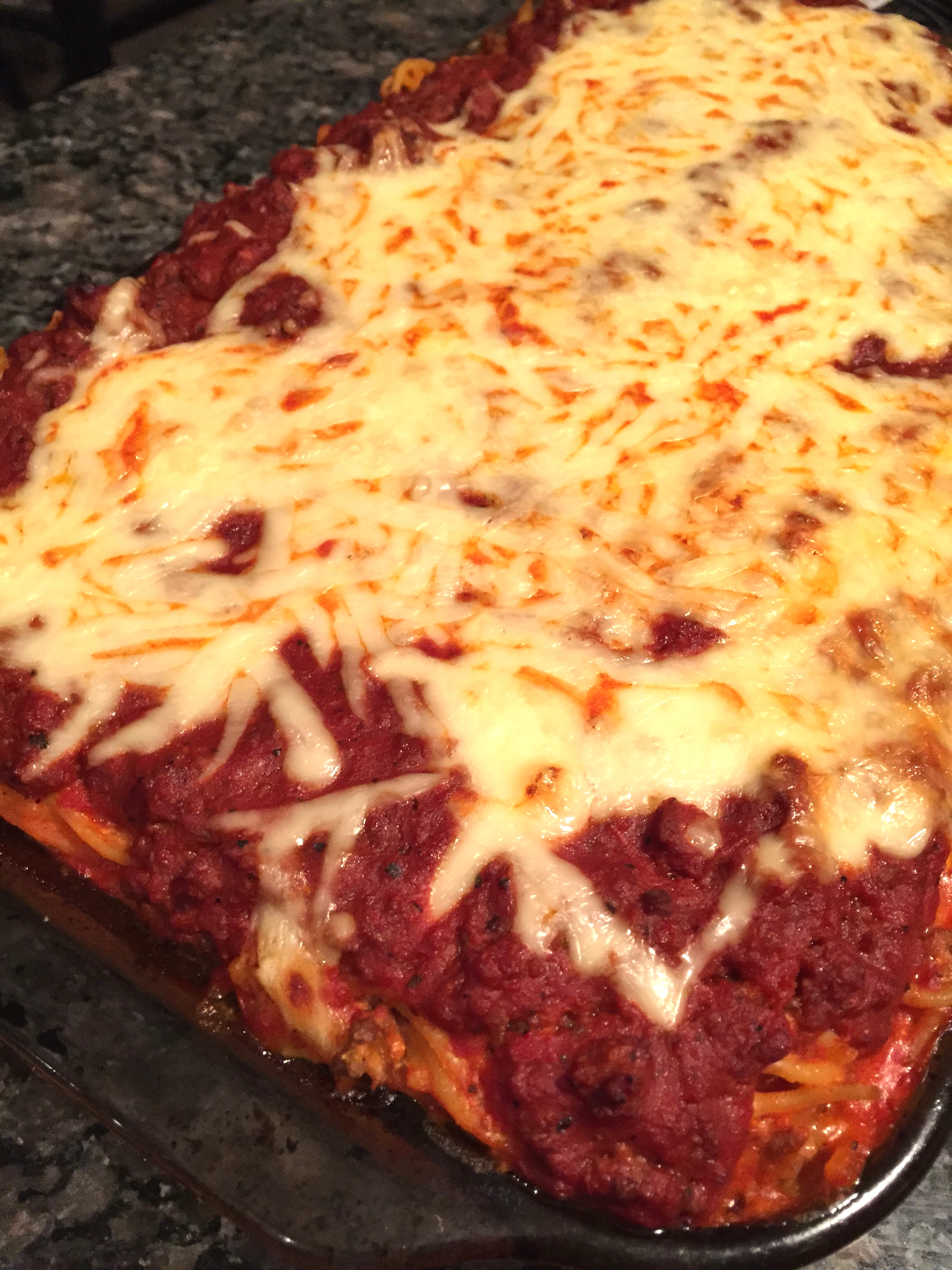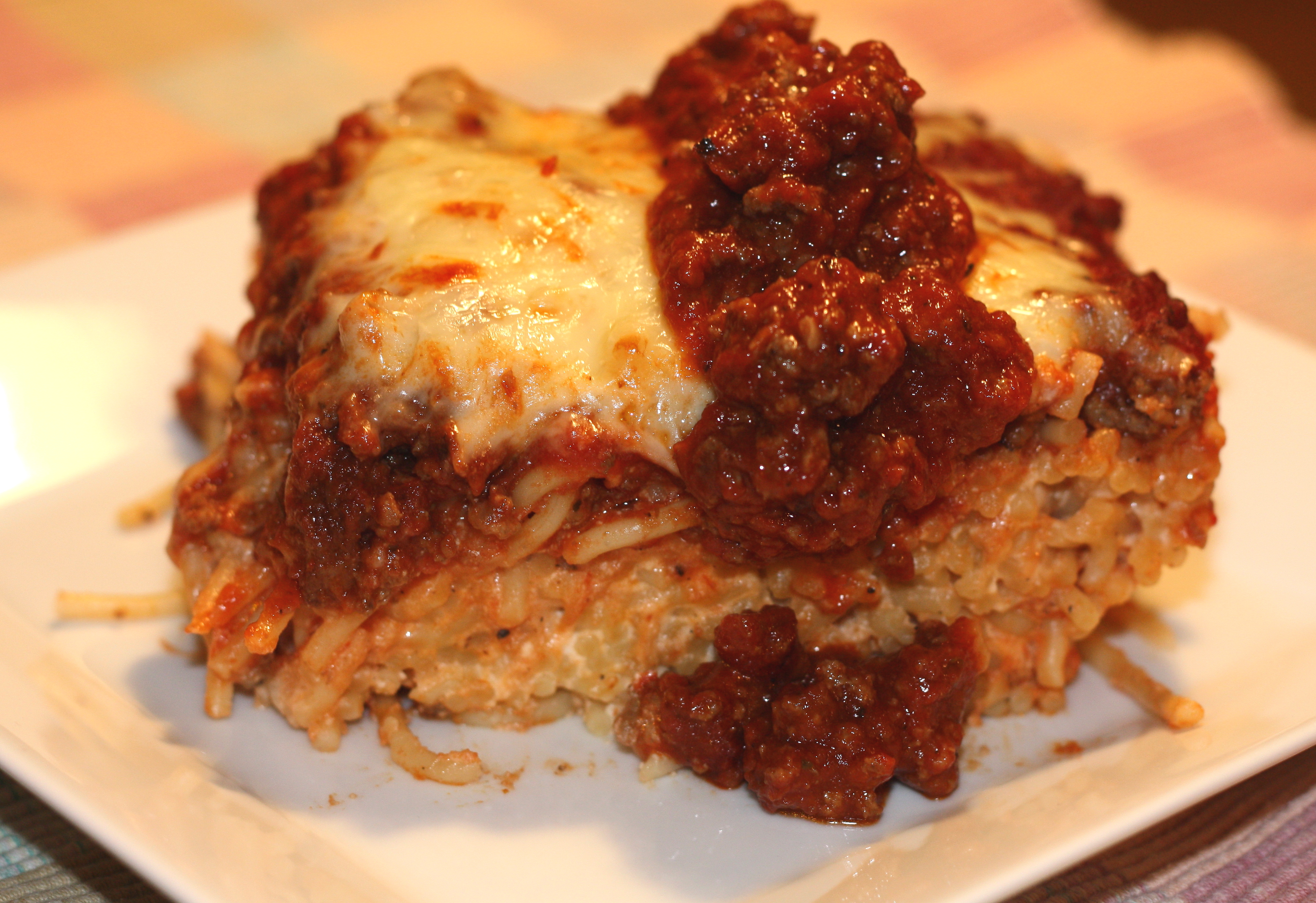 Spaghetti pie is traditionally made with eggs in the noodle base. I thought it looked like a fun dinner to make for my family instead of our usual spaghetti supper. My variation uses ricotta cheese, sour cream, butter and parmesan cheese in the base. You can use your favourite pasta sauce in this recipe, whether that is meat-based or a marinara. I used a meat sauce for this and have included the recipe for it.