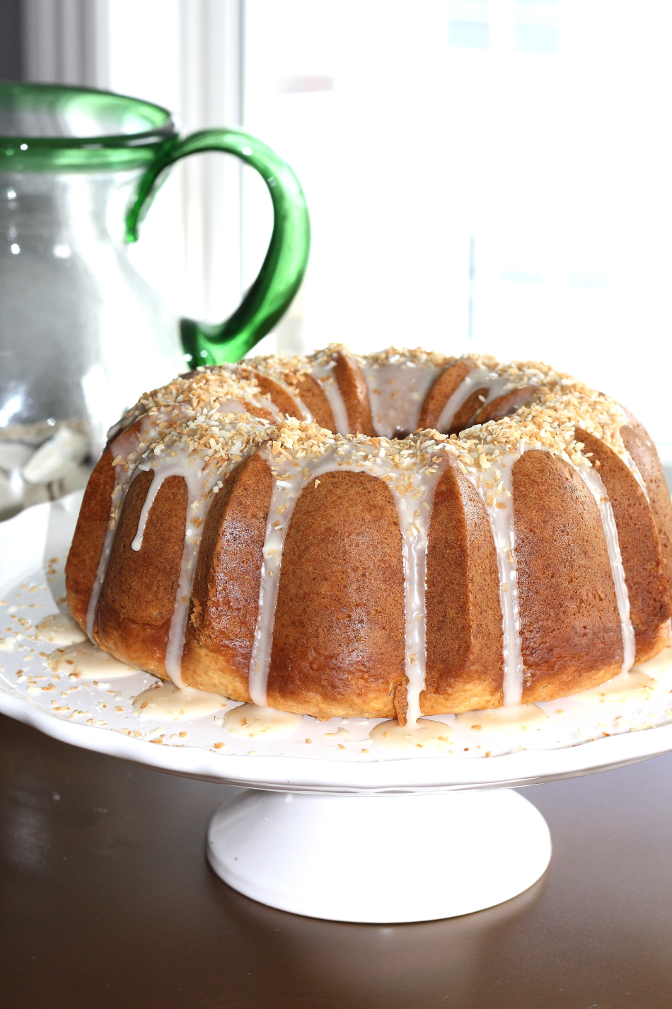 I have a new bundt cake pan so I have been anxious to try it out. I have been thinking about a coconut cake and decided cream cheese and lime would make a tasty combination with the coconut. I really love how this cake bakes up nice and sturdy, yet moist and delicious!